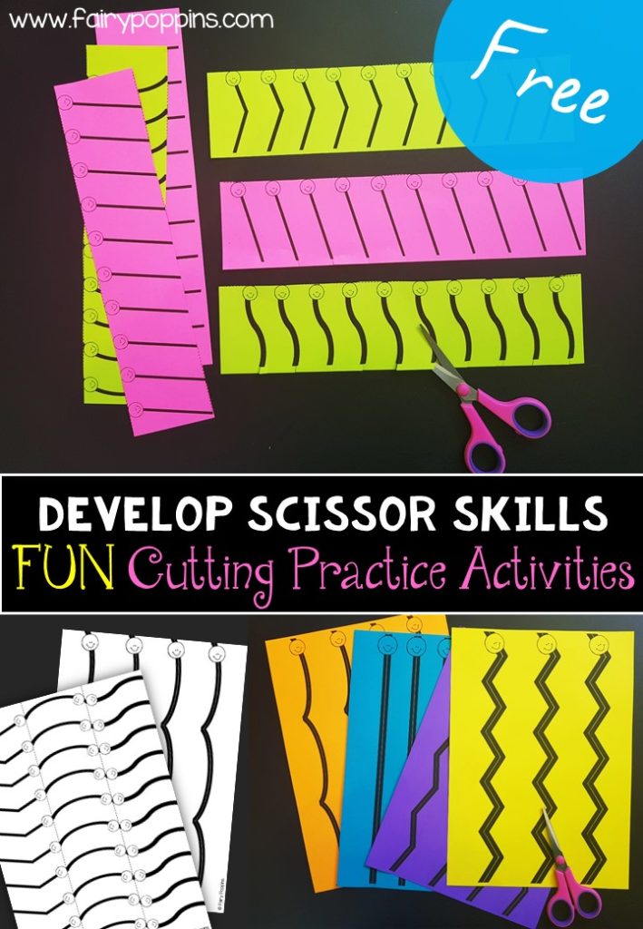 Teaching kids to use scissors can be a tricky task! Be patient, it takes can take some time for kids to build this skill and develop their confidence.