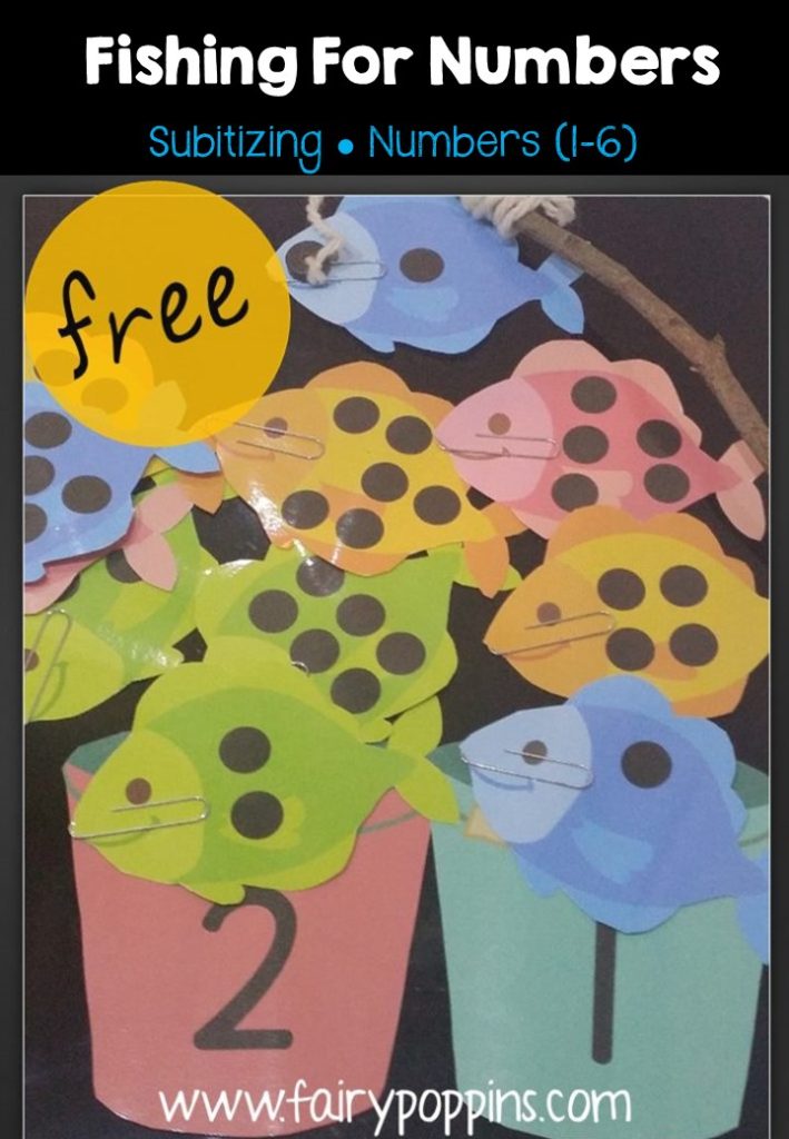 This subitizing fishing game is a fun addition to an ocean theme. It helps kids learn numbers up to six and is a fun addition to Pre-K, Preschool or Kindergarten math centers.